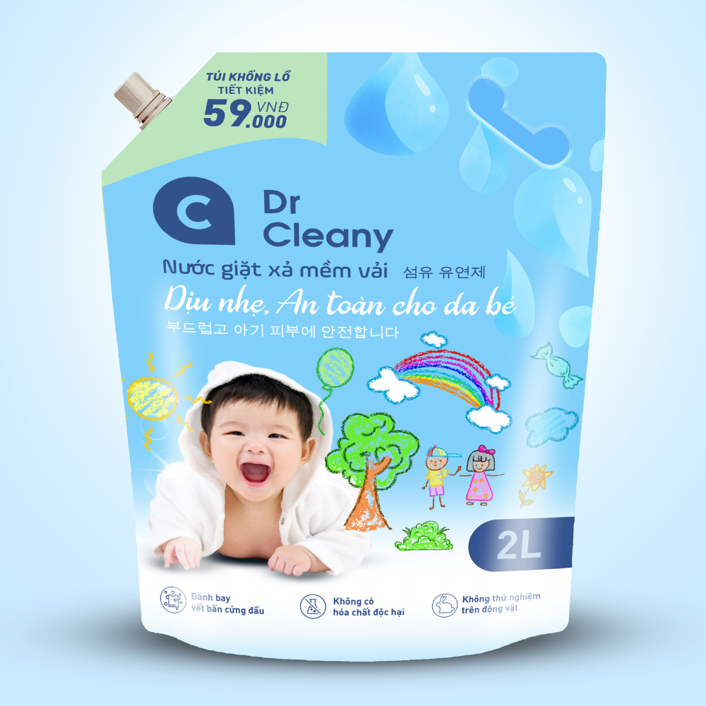 Nước Giặt Xả Cho Bé Dr. Cleany 2kg - Dịu Nhẹ, An Toàn Cho Da Nhạy Cảm